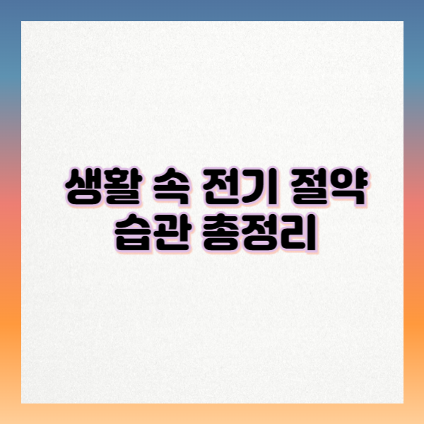 전기요금 절약은 거창한 기술이 아니라 매일 반복되는 습관에서 시작됩니다. 오늘부터 하나씩 실천해보세요.